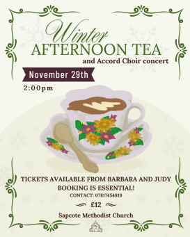 | 29th November | Winter Afternoon Tea and Accord Choir | 2:00pm |
