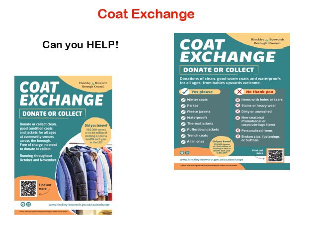 Our Food Bank collection point is outside 18 Mill Close if anyone wishes to make a donation. Other donation points exist including The Vine Christian Book shop and Cameo at the Stoke GOlding Methodist Church.